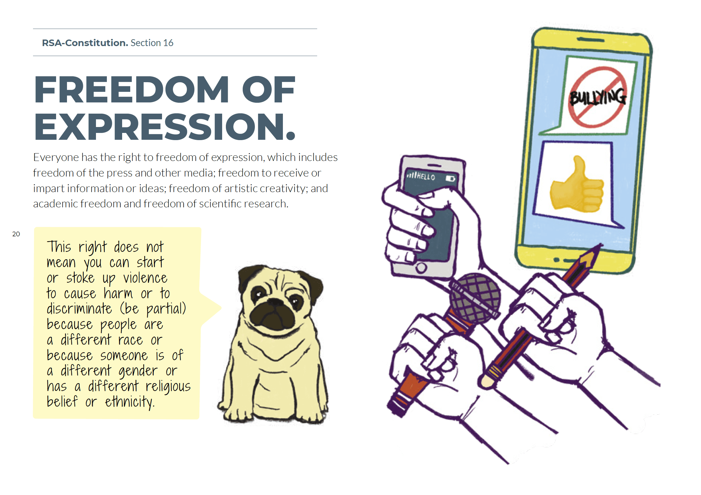 Fully illustrated by local designer Dominic Roberts, Ziegfriedt Loots has encapsulated his working legal knowledge of human rights into the Basic Legal Guide for Kids, making children fully aware of the rights available to them in every circumstance.